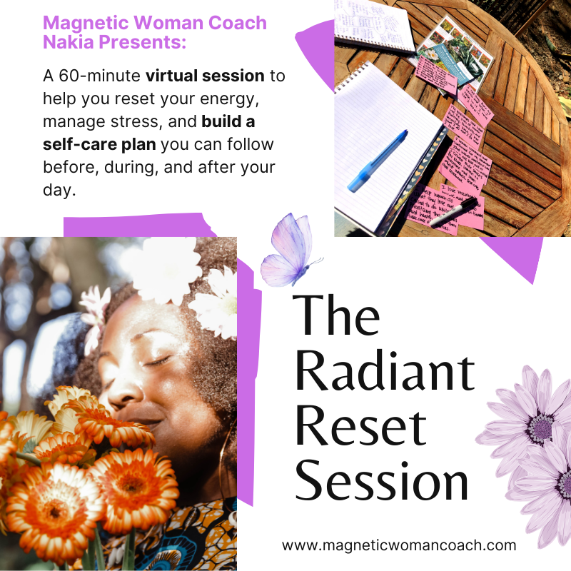 A 60-minute virtual session to help you protect your peace, restore your energy, and create a personalized self-care plan that supports you throughout your day.